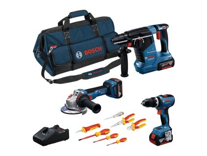 Bosch 18 V súprava 3 ks náradia: GSR + GWS + GBH + 3× 4.0Ah + GAL 18V-40 Professional