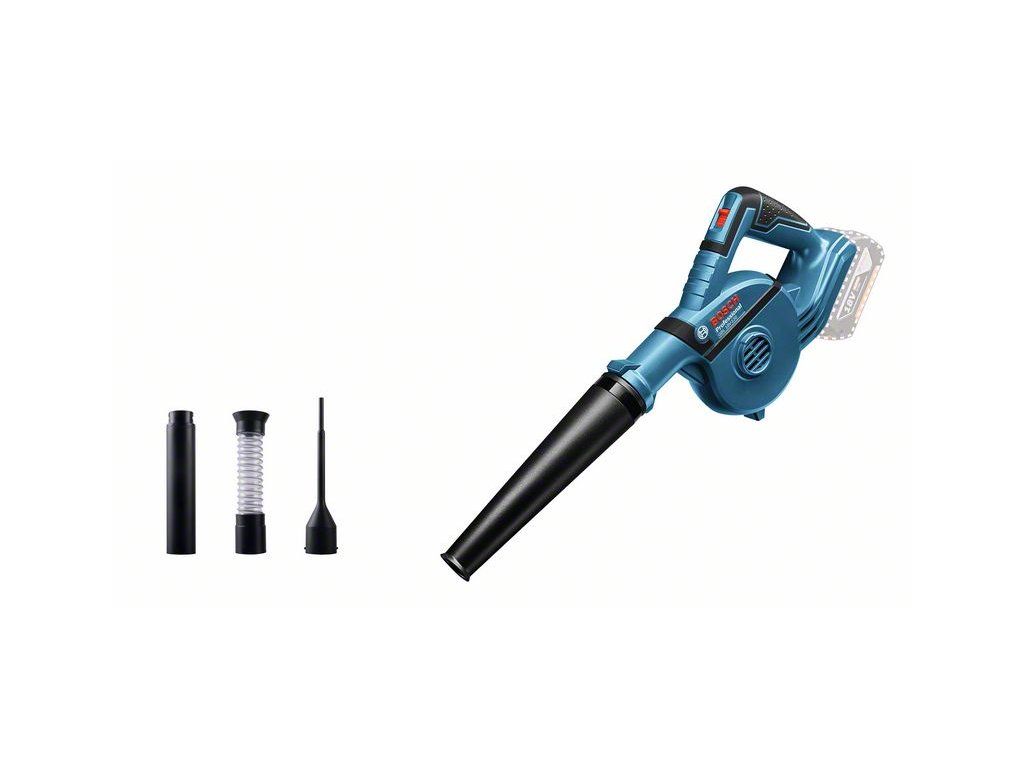 Akumulátorové dúchadlo GBL 18V-120, Akumulátorový fúkač GBL 18V-120 Professional umožňuje rýchle čistenie v kategórii 18 V. Kompaktná a vyvážená konštrukcia uľahčuje manipuláciu a ovládanie. Akumulátorový fúkač je možné používať na upratovanie na pracovisku a čistenie vŕtaných dier. Navyše rýchlosť vzduchu 270 km/h je dostatočne silná na dobré vyčistenie priestoru. Tento akumulátorový fúkač je kompatibilný so všetkými akumulátormi a nabíjačkami Bosch Professional 18 V (Profesionálny 18 V systém).