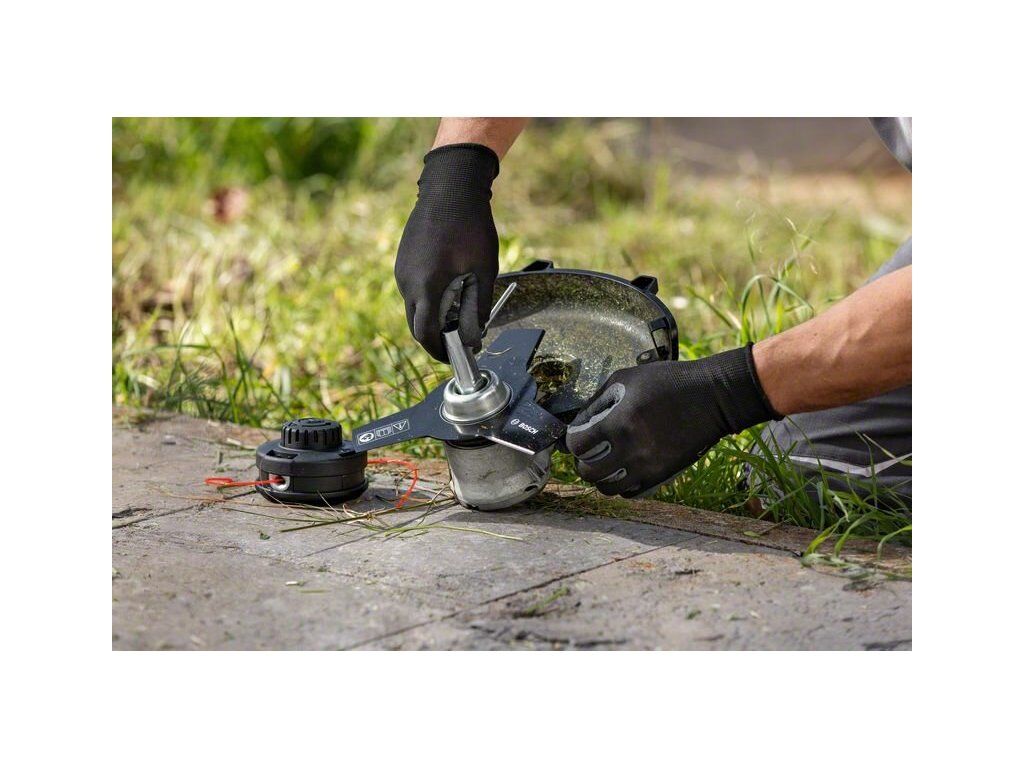 GFR 18V-23 Professional je akumulátorový krovinorez so silným bezuhlíkovým motorom na vysoký výkon, dlhšiu dobu prevádzky a dlhšiu životnosť. Umožňuje manuálne nastavenie rýchlosti motora podľa aktuálnych podmienok práce a optimalizáciu doby prevádzky. Elektronické ovládanie rýchlosti udržiava konštantné otáčky a stabilný výkon kosenia. Funkcia Bosch Anti-Tangle zaručuje hladší postup kosenia, zabraňuje zablokovaniu dlhou trávou alebo burinou pri obtočení okolo hriadeľa. Dobre vyvážená a ľahká konštrukcia podporuje prácu bez námahy. Je vybavený odolným hliníkovým krytom motora, laserom rezaným kovovým nožom s priemerom kosenia 23 cm a dištančným oblúkom, ktorý chráni kmene stromov. Dodáva sa s cievkou Pro-Tap s technológiou EasyWind na ľahšie vyžínanie. Umožňuje jednoduchú výmenu noža a cievky. Dodáva sa aj s popruhom na plece.