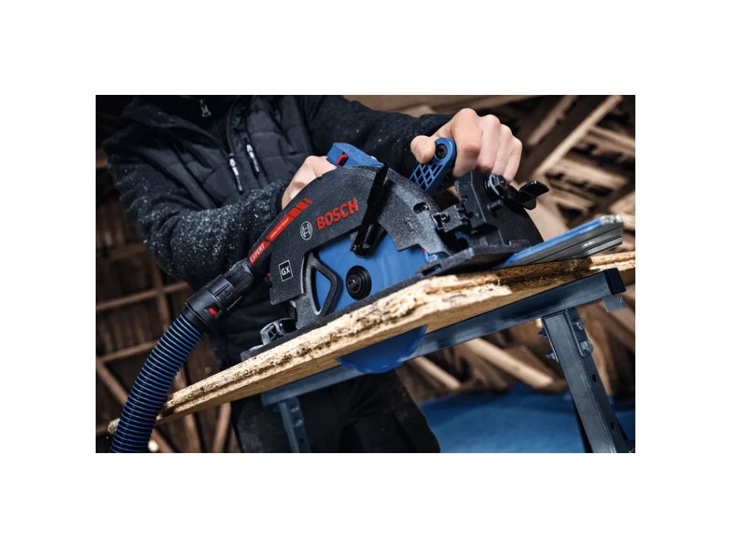EXPERT EXKS18V-68 GX je špičková 18 V okružná píla s presným priečnym rezaním. V kombinácii s vodiacimi koľajničkami FSN X vytvorí vynikajúci mobilný systém kapovacej a pokosovej píly na presné a uhlové rezanie. Je vybavená výkonnou technológiou BITURBO Brushless, vysokovýkonným motorom a hnacím ústrojenstvom, ktoré sú špeciálne navrhnuté na skvelé využívanie extrémneho výkonu akumulátorov EXPERT. EXPERT EXKS18V-68 GX je pripravená na priečne rezanie a v kombinácii s vodiacimi koľajničkami Bosch FSN X sa náradie premení na špičkovú mobilnú kapovaciu a pokosovú pílu. Táto okružná píla je vybavená pokročilou ochranou: Funkcia Stop Control rozpozná koniec rezu a okamžite vypne náradie, funkcia KickBack Control zasa zastaví motor, keď sa náradie zasekne. Obe tieto funkcie minimalizujú riziko zranenia. Skvelá ergonómia náradia umožňuje dokonalú manipuláciu a ovládanie vo všetkých polohách rezania.