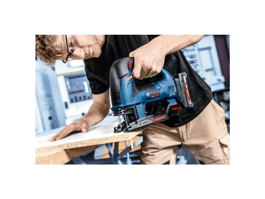 Je to ideálne náradie na oblé a priečne rezy masívneho dreva, drevotrieskových dosiek a drevokompozitných materiálov, ako aj na hrubšie alebo tvrdšie materiály. Kompatibilita so systémom Bosch Professional 18 V a alianciou výrobcov akumulátorov AMPShare.