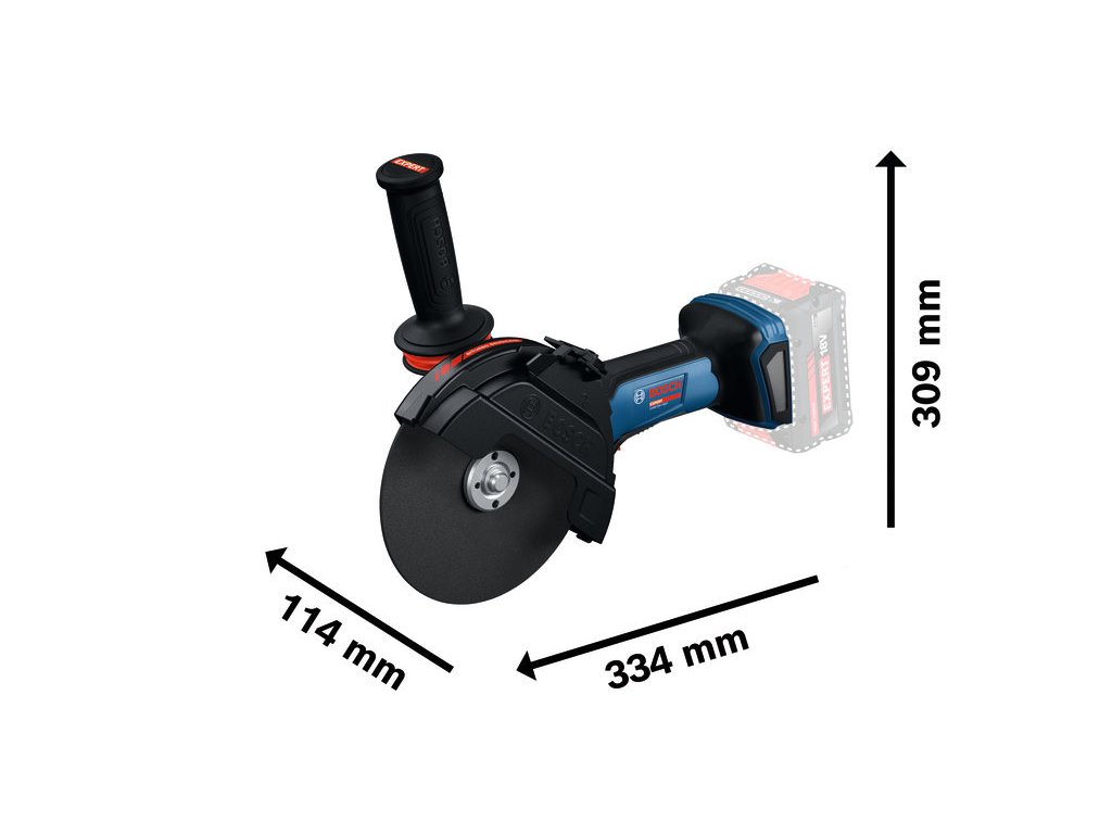 - Výkon v kombinácii s kompaktnou veľkosťou: Hĺbka rezu až 230 mm zodpovedajúca veľkej uhlovej brúske, ale s veľkosťou a hmotnosťou malej uhlovej brúsky