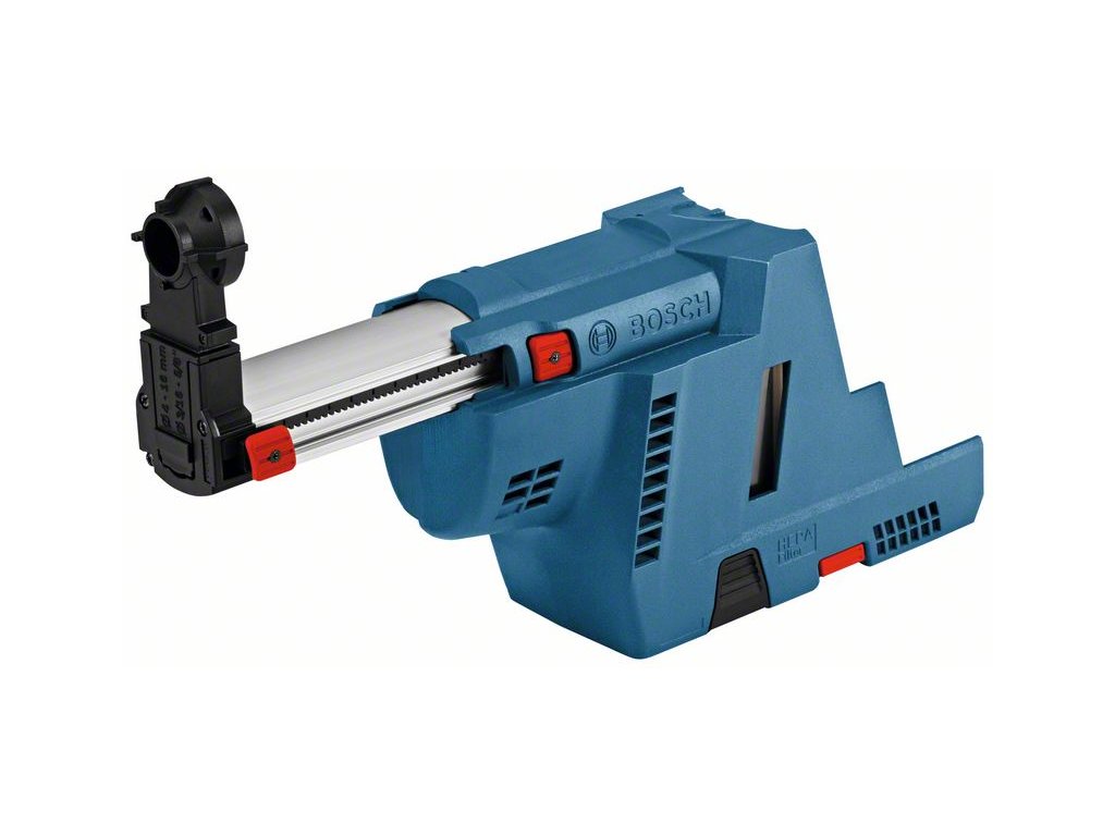 Systémové príslušenstvo GDE 18V-16, Bezprašné vŕtanie s GBH 18V-26 + GBH 18V-26 F, Akumulátorový a motorom poháňaný vysávač, Filter HEPA zachytí až 99,97 % všetkých častíc väčších než 0,3 mikrometra, Funkcia Auto Power ON a Auto Power OFF s 2-sekundovým chodom naprázdno po uvoľnení spúšte kladiva, Kartónová škatuľa