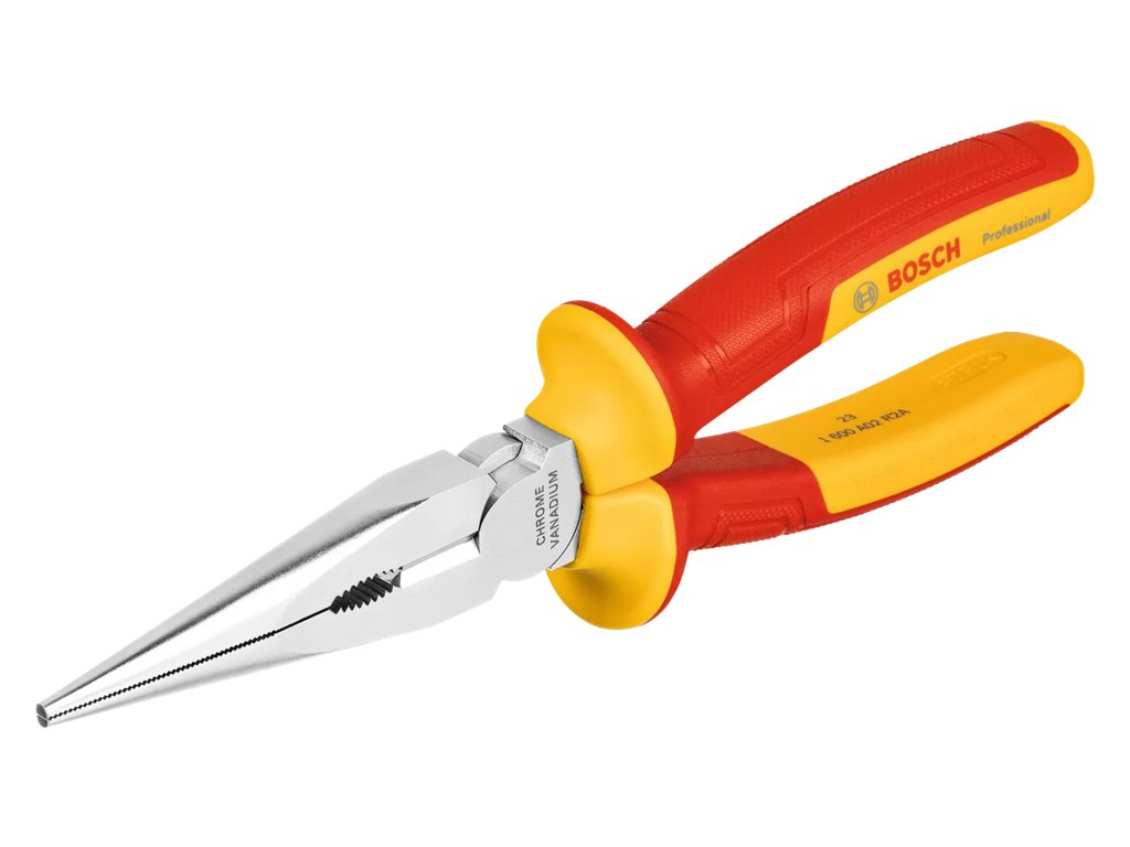 - Izolované, jednoduché, praktické – rovné kliešte s dlhými čeľusťami VDE Bosch Professional – 200 mm