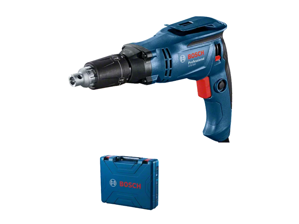 S elektrickým skrutkovačom GTB 650 Professional je montáž sadrokartónu praktická, efektívna a cenovo dostupná – zvládne práce so sadrokartónom, tenkou oceľou a plechom. Tento účinný skrutkovač s motorom s otáčkami až 5 000 ot/min umožňuje nasadenie automatického zásobníka skrutiek MA55 a automatické podávanie skrutiek na rýchlu montáž sadrokartónu. Reverzibilný hĺbkový doraz umožňuje odskrutkovávanie bez nutnosti jeho odoberania a zaručuje pohodlie a bezpečnosť. Používajte toto náradie so skrutkami do sadrokartónu priemeru až 4 mm v jednej vrstve sadrokartónu na ľahkej oceľovej nosnej konštrukcii a samoreznými skrutkami priemeru až 6 mm do oceľového plechu hrúbky 1,5 mm.