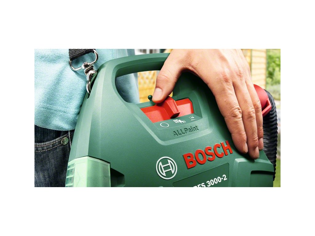 Zbohom štetky – rýchle a rovnomerné nanášanie na textúrované povrchy a rohy. 650 W motor veľmi zjednodušuje a urýchľuje maľovanie. Rýchlo nanáša farbu s rýchlosťou 2 m²/min, je vhodný na stredné až veľké práce v interiéroch a exteriéroch. Veľký 1 000 ml zásobník farby šetrí drahocenný čas minimalizáciou dopĺňania počas práce. Striekací systém ALLPaint: nanášanie farby na drevo, glazúru alebo lak na drevo alebo kov. Farba je jemne atomizovaná pre rovnomerné nanášanie na všetky povrchy bez kvapkania