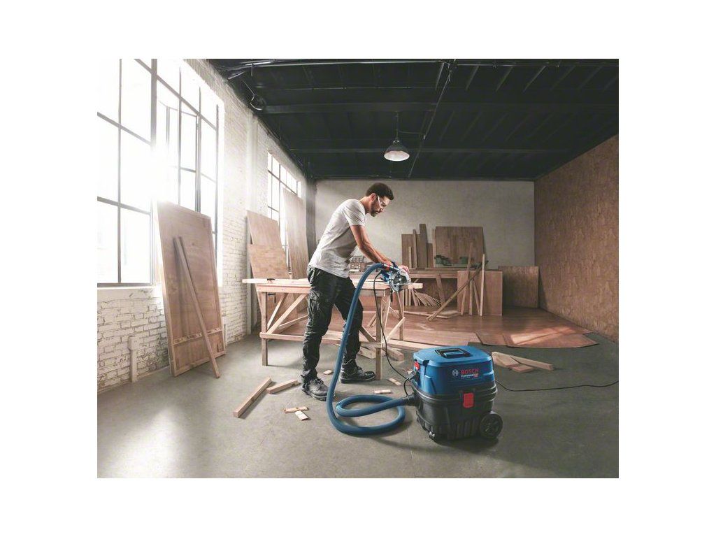 GAS 12-25 PL Professional je certifikovaný vysávač triedy L. Výkonný motor tohto vysávača triedy 1250 W poskytne vysoký sací výkon na vysávania za mokra aj sucha. Dostupný prietok vzduchu 65 l/s a nasávací podtlak 200 mbar pri tomto vysokoefektívnom zariadení umožní udržiavať vaše pracovisko čisté a bezprašné. Vďaka poloautomatickému systému čistenia filtra (SFC) je čistenie filtra rýchle a jednoduché. Vysávač disponuje aj rozhraním Click & Clean, takže môžete zariadenie bez námahy a bez problémov pripojiť k elektrickému náradiu Bosch.