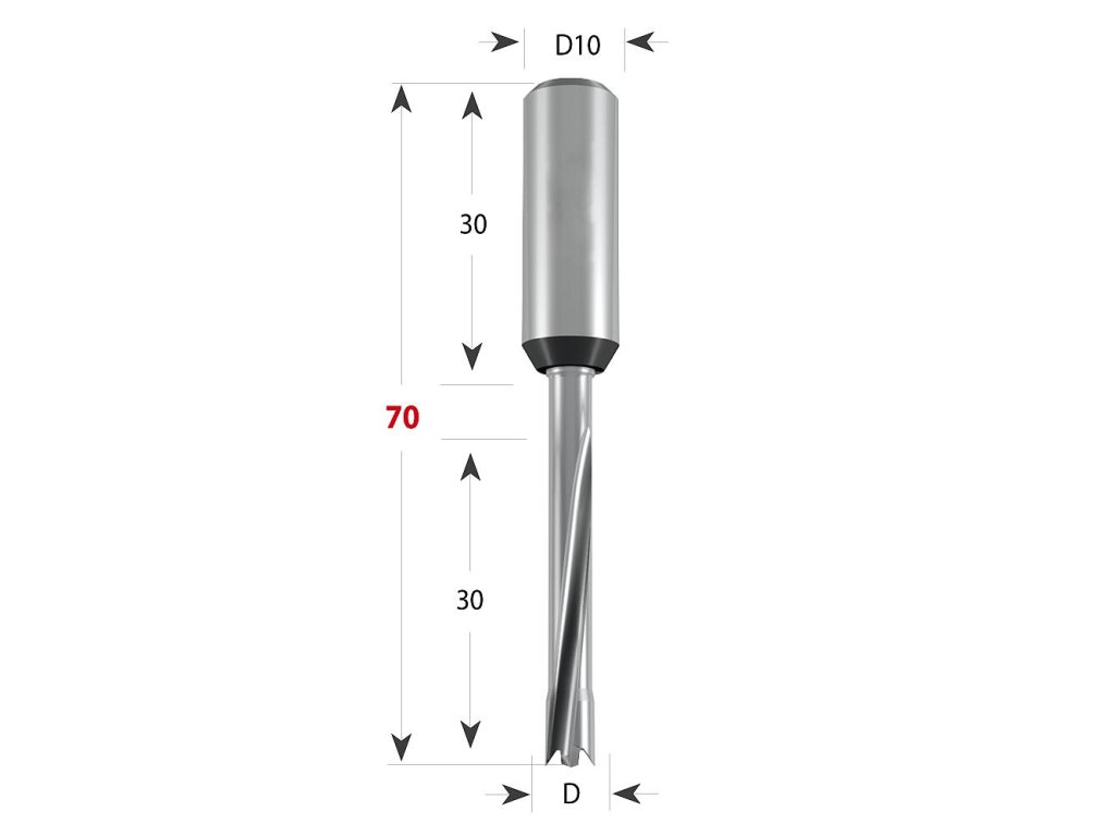 Ideálne na drevotriesku, MDF, HDF a lamináty. Vhodné pre priechodzie otvory na tenkých doskách - s možnosťou vyšších otáčok a rýchlostí posuvu. Použitie v upínacích puzdrach na kolíkovacích strojoch.