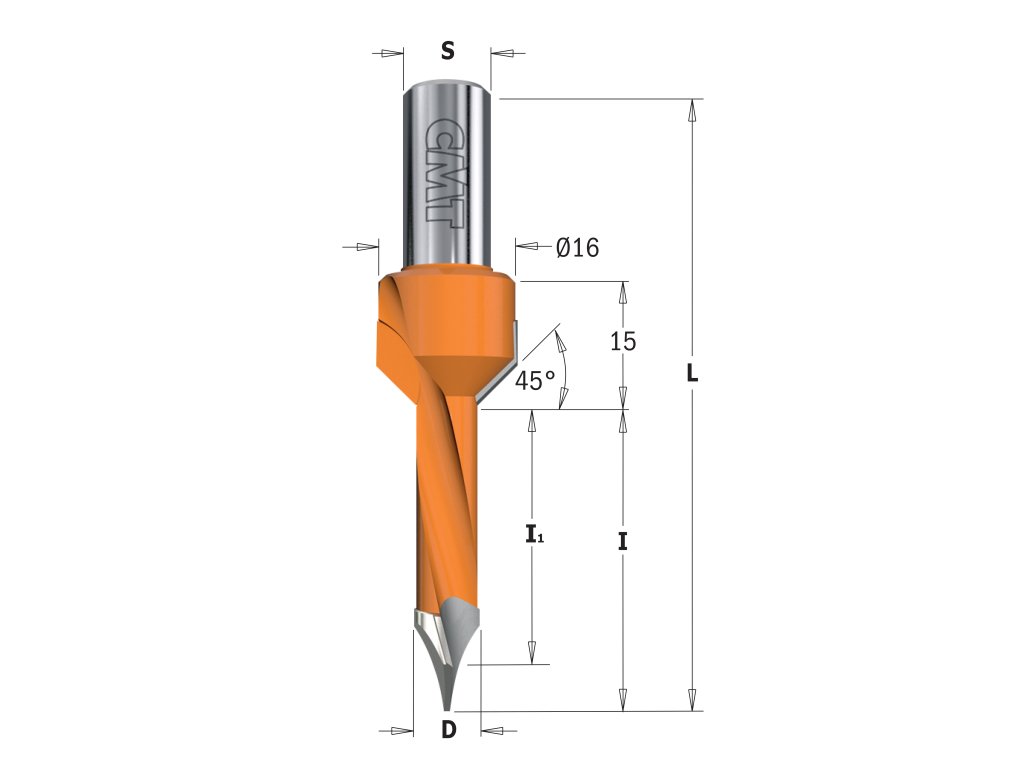CMT 378 Vrták kolíkovací priechodzí so záhlbníkom S10 L70 HW - D8x35 D2=16 S=10x20 L