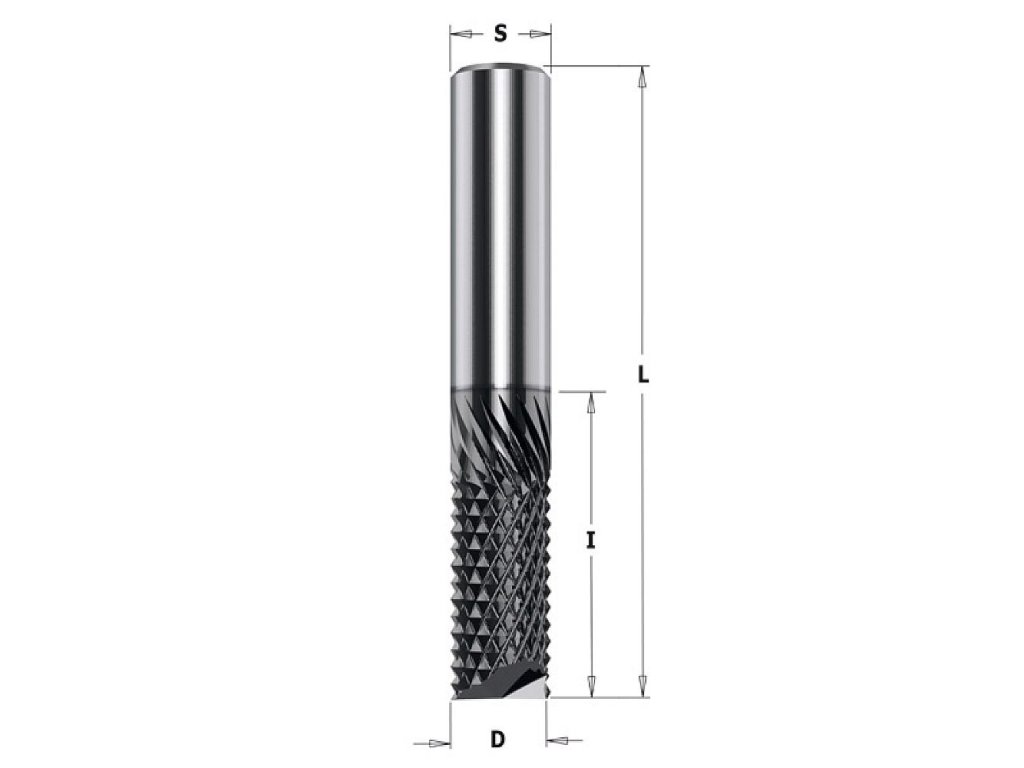 Fréza pre efektívne rezanie obrysov, orezávanie koncov a formátovanie panelov z kompozitných materiálov, sklených vlákien, karbónových vlákien a fenolových dosiek. Na použitie v CNC obrábacích a vŕtacích centrách alebo ručných frézkach.