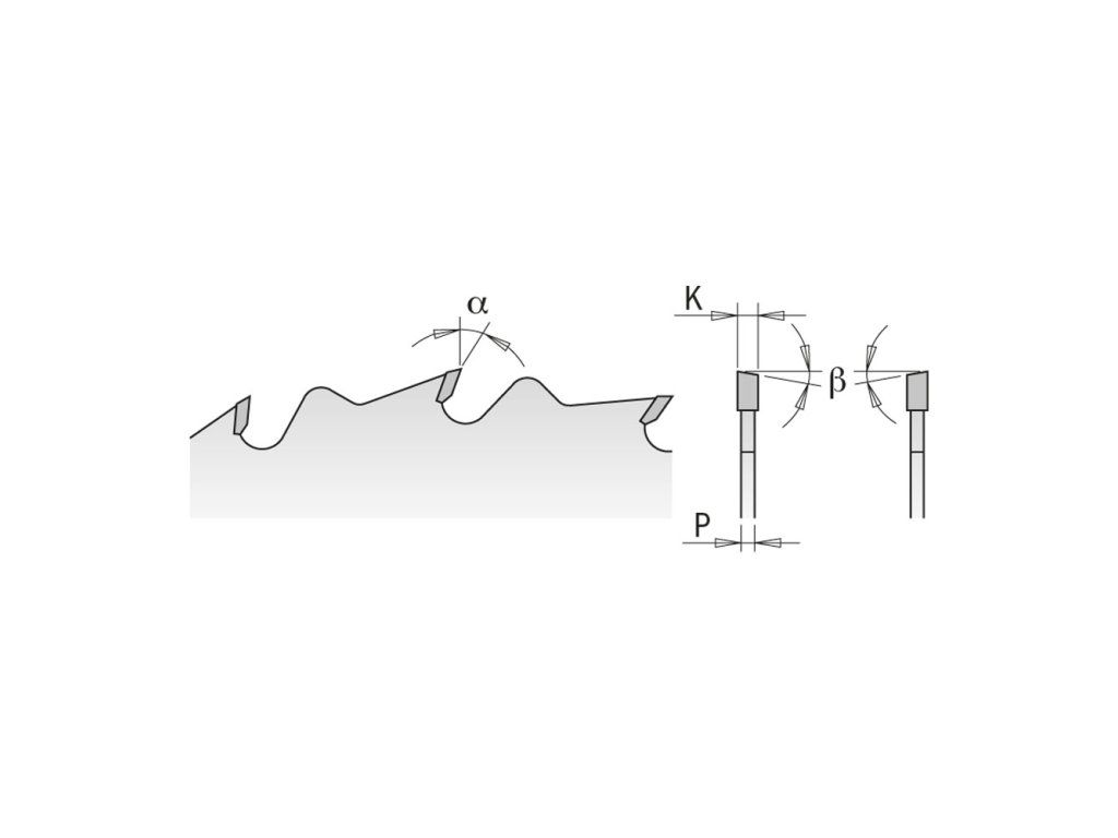Pílový kotúč so striedavo šikmými tvrdokovovými zubami HW pre pozdĺžne rezy tvrdého a mäkkého dreva. Povrch kotúča je lakovaný pre zvýšenú odolnosť voči korózii. Zub s obmedzovačom triesky zabraňuje spätnému rázu. Expanzné drážky zaručujú rovný rez. Určené pre stroje s ručným aj strojným posunom.