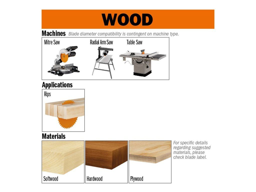 • Stroje: Podľa priemeru pre radiálne, formátovacie, pokosové a stolné píly.