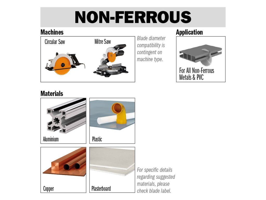 Pílový kotúč s negatívnym uhlom čela. Skonštruované pre vysoký výkon, kvalitný rez a dlhú životnosť ostria. CMT kotúče pre neželezné kovy a plasty sú ideálne pre skracovacie, radiálne a kotúčové píly. Použitie pre rezanie všetkých neželezných kovov a plastov, lamina a obojstranne povlakovaných dosiek melamínom. POZOR: Odporúčame používať mazanie emulziami pre neželezné kovy a plasty.