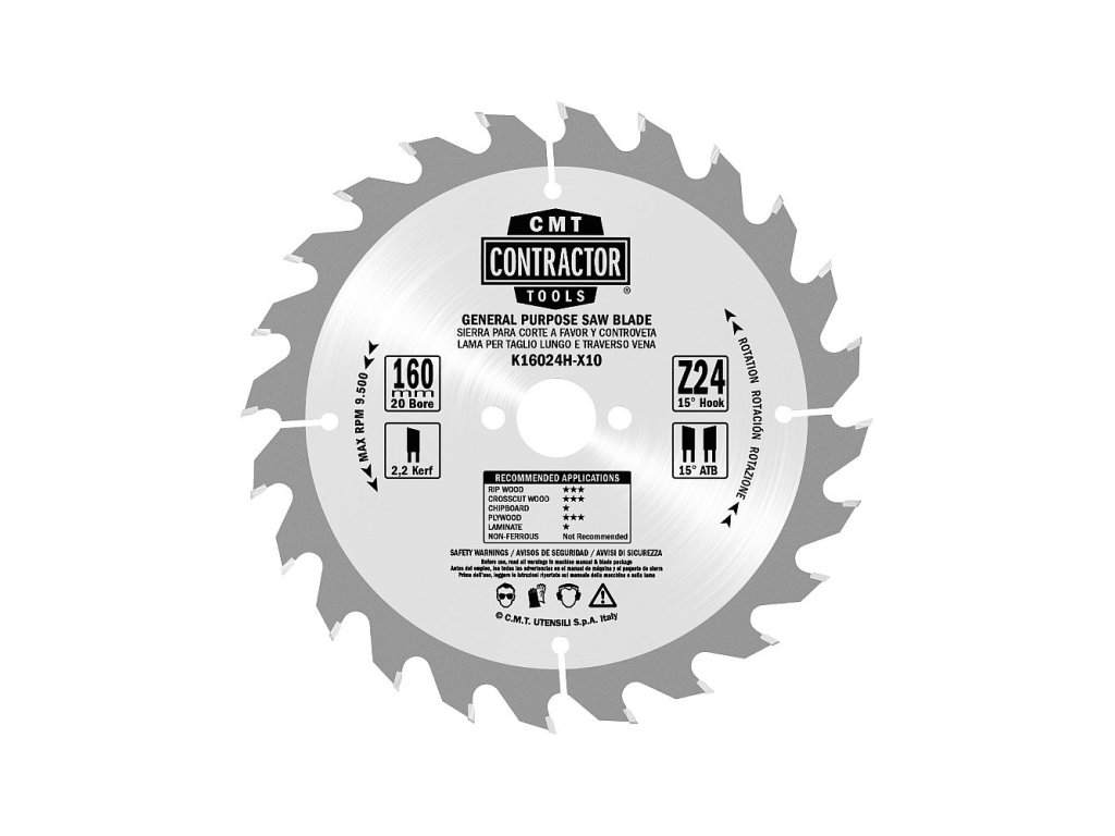 CMT Contractor Pílový kotúč na drevo - D160 x 2,2 d20 Z24 HW (1 ks)