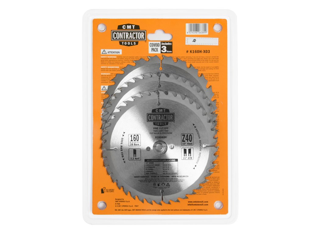 CMT Sada Contractor Pílových kotúčov na drevo - D160x2,2 d20 Z24+Z40 HW, 3ks