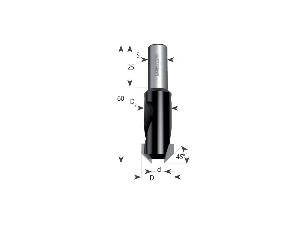 CMT Záhlbník HW so stopkou - d=6 D16 a=45° S=10X25 pravotočivý