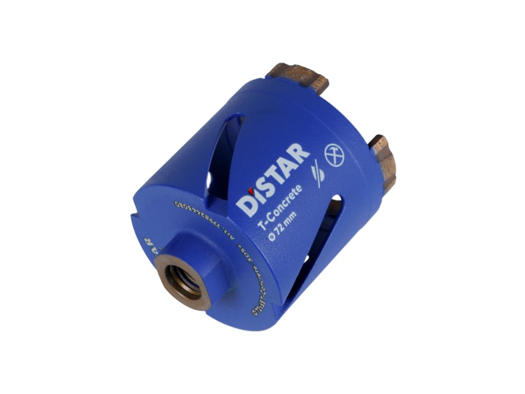 Diamantový vrták Distar DDS-W T-Concrete je určený na vŕtanie otvorov pre ďalšiu inštaláciu objímok. Vhodný na prácu s povrchmi z nevystuženého a vystuženého betónu, ako aj tehál.
