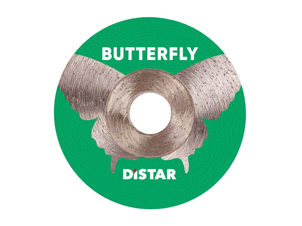 Kotúč Butterfly má jedinečnú konštrukciu a množstvo výhod oproti galvanickým kotúčom. Je vyrobený z plného diamantového segmentu s hrúbkou iba 0,6 mm, čo zabezpečuje minimálnu šírku rezu a dokonale čistú hranu.