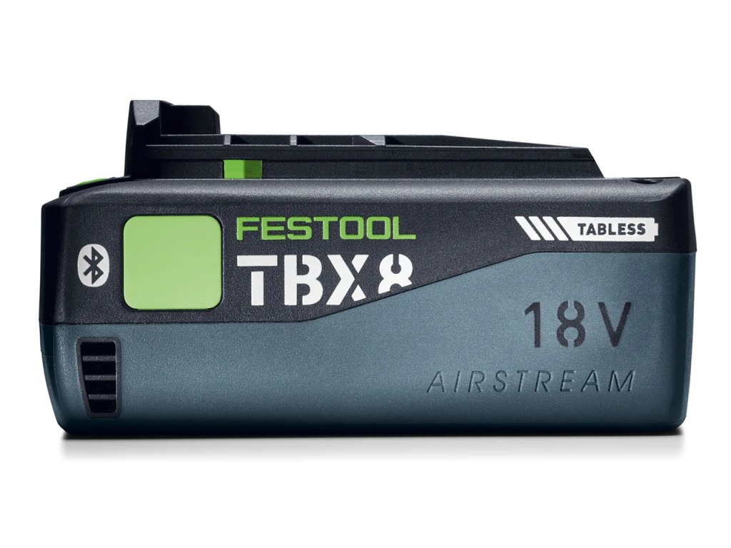 Najsilnejší akumulátor s najdlhšou výdržou v portfóliu Festool: nezáleží na stroji, nezáleží na použití – TBX 8 s technológiou Tabless zaručuje maximálny výkon a výdrž aj pri náročných aplikáciách. Umožňujú to články s technológiou Tabless: nižšia tvorba tepla, dlhšia doba chodu a rýchlejšie nabíjanie. Vďaka technológii AIRSTREAM sa akumulátor s rýchlonabíjačkou AIRSTREAM SCA 16 aktívne chladí pred a počas nabíjania a je extrémne rýchlo opäť pripravený na použitie. Optimalizovaný tok energie akumulátorov s technológiou Tabless vám poskytne extra porciu výkonu a zabezpečí dlhšiu životnosť vášho akumulátora. Akumulátor, ktorý je vybavený technológiou Bluetooth®, automaticky spustí spárovaný vysávač po zapnutí akumulátorového náradia – a v kombinácii s aplikáciou Festool poskytuje podrobné informácie o stave nabitia, teplote alebo nabíjacích cykloch. A, samozrejme, je plne krytý 3-ročnou zárukou Festool Service.