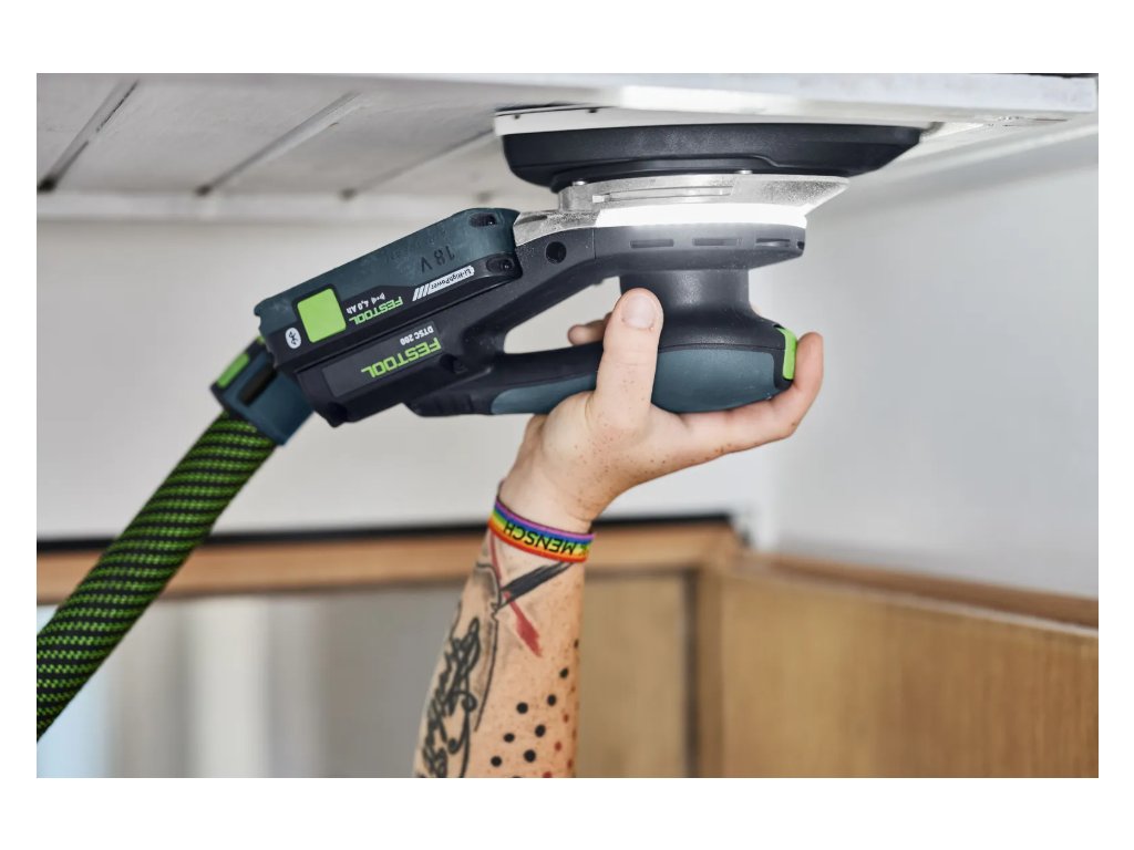 - Viac funkcií s aplikáciou Festool: pomocou smartfónu môžete osvetlenie individuálne plynule stlmiť a nastaviť trvanie svietenia – tak môžete povrchy po brúsení ešte raz skontrolovať