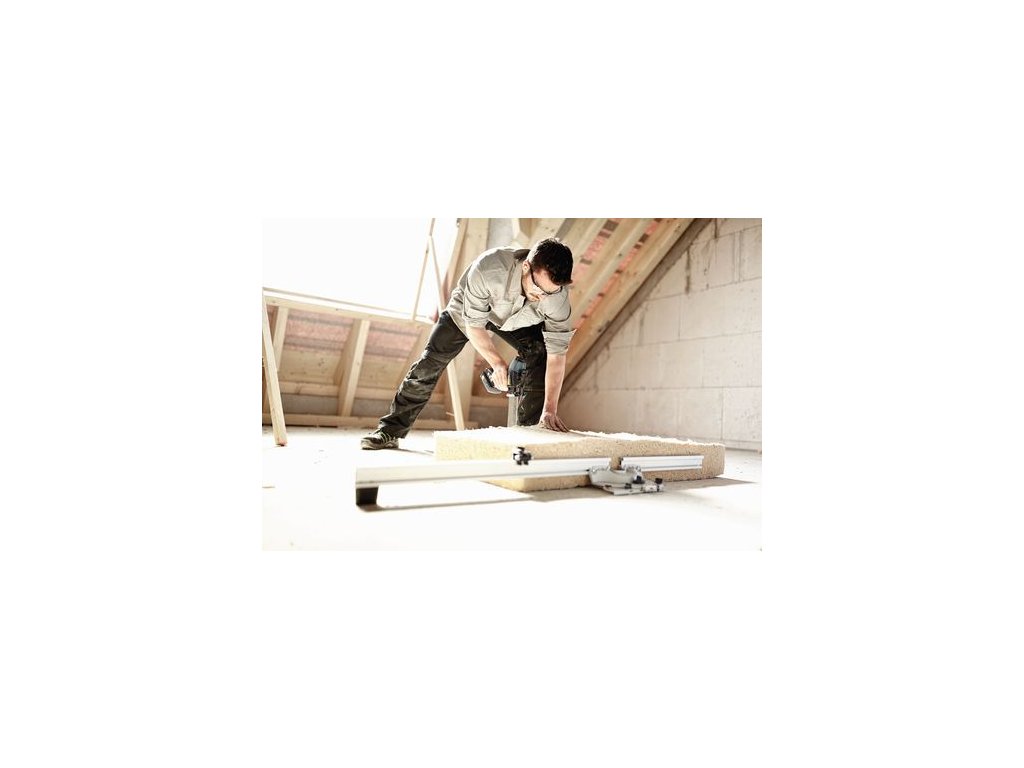 - Pre mimoriadne efektívne rezanie materiálu: s vodiacou lištou a uhlovým dorazom (k dispozícii v súprave alebo ako príslušenstvo) sa vydaria presné opakované rezy
