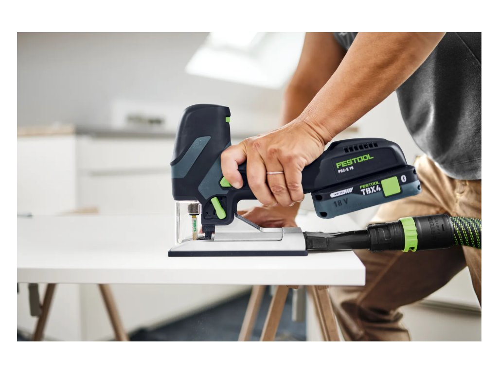 Malá akumulátorová priamočiara píla s hmotnosťou len 2,3 kg vrátane akumulátora a so štíhlym, ergonomickým dizajnom je zredukovaná na to najnutnejšie: pravouhlé a rovné rezy s hrúbkou materiálu do 40 mm. Obsluha je jednoduchá. Pevný 90° stôl a vodiaca kladka vhodná pre každú šírku pílového listu zabezpečujú, že stroj je rýchlo pripravený na použitie bez zdĺhavého nastavovania. Nemusíte robiť kompromisy v oblasti pracovného komfortu a materiálovej kompatibility. Vďaka výmene pílového listu bez použitia náradia a nastaveniu otáčok s automatickým spustením môžete vždy vytvoriť podmienky vhodné pre použitie. Mimoriadne praktický je aj príslušný akumulátor, ktorý je skutočným zdrojom energie: výkonný akumulátor TBX 4 zaručuje rýchly postup pri práci a je kompatibilný so všetkým 18 V akumulátorovým náradím a nabíjačkami.