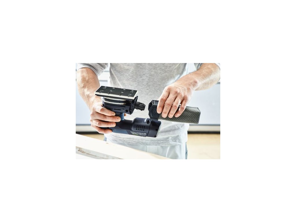- So sieťovým adaptérom plug it k brúske s neobmedzeným časom chodu v dlhodobej elektrickej prevádzke – ideálne na prácu v interiéri v kombinácii s mobilným vysávačom Festool