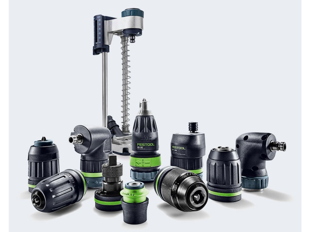 - Rafinované nadstavce a systém pre rýchlu výmenu nástrojov CENTROTEC na všetky druhy použitia: uhlový a excentrický nadstavec, ako aj hĺbkový doraz