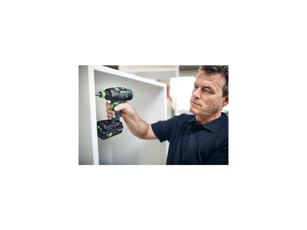 Pre plnú flexibilitu pri vŕtaní a skrutkovaní: plne elektronické nastavenie krútiaceho momentu, rýchlovýmenný systém CENTROTEC, uhlový a excentrický nadstavcom ako aj hĺbkový doraz vyriešia každé vŕtanie a skrutkovanie. Vďaka kombinácii akumulátora Li-HighPower s bezuhlíkovým motorom EC-TEC, ktorý nevyžaduje údržbu, je akumulátorový vŕtací skrutkovač T 18+3 ľahký, má dlhý chod a dlhú životnosť. Aby bol deň bez starostí, akumulátorový skrutkovač a akumulátor sú kompletne zaistené službami Festool. K dispozícii v tvare T alebo – podľa individuálneho priania – ako C 18 aj v jedinečnom tvare C.