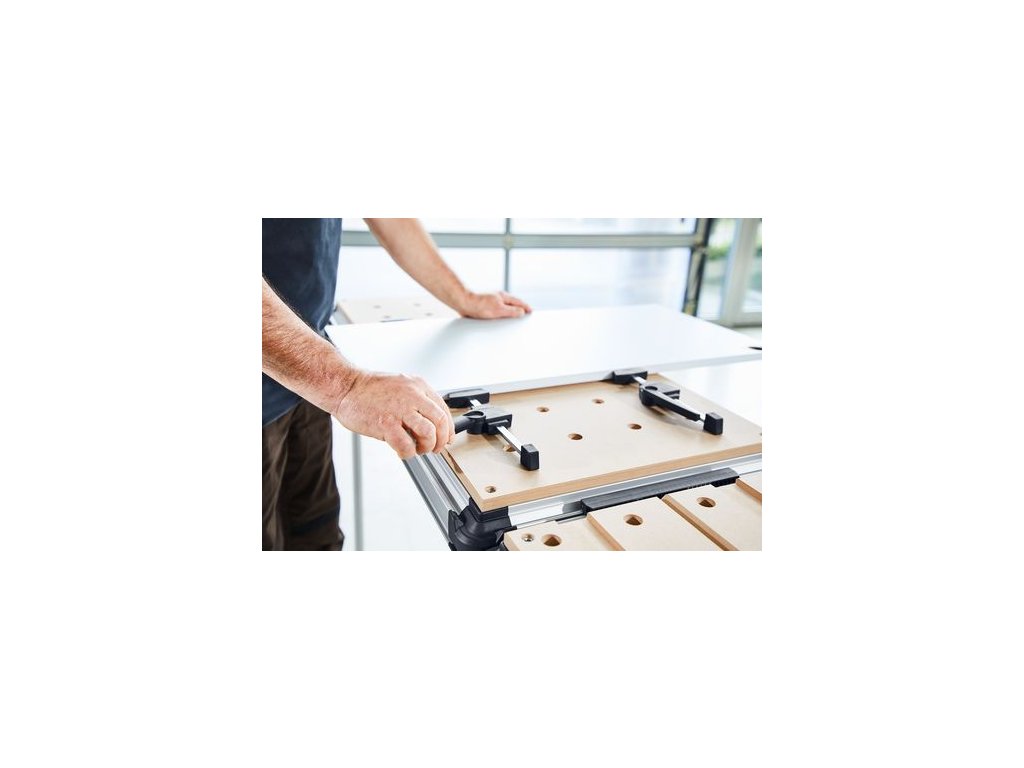 - Stabilná pracovná plocha pozostávajúca z dierovanej dosky a hliníkového profilu poskytuje možnosti zovretia a upevnenia