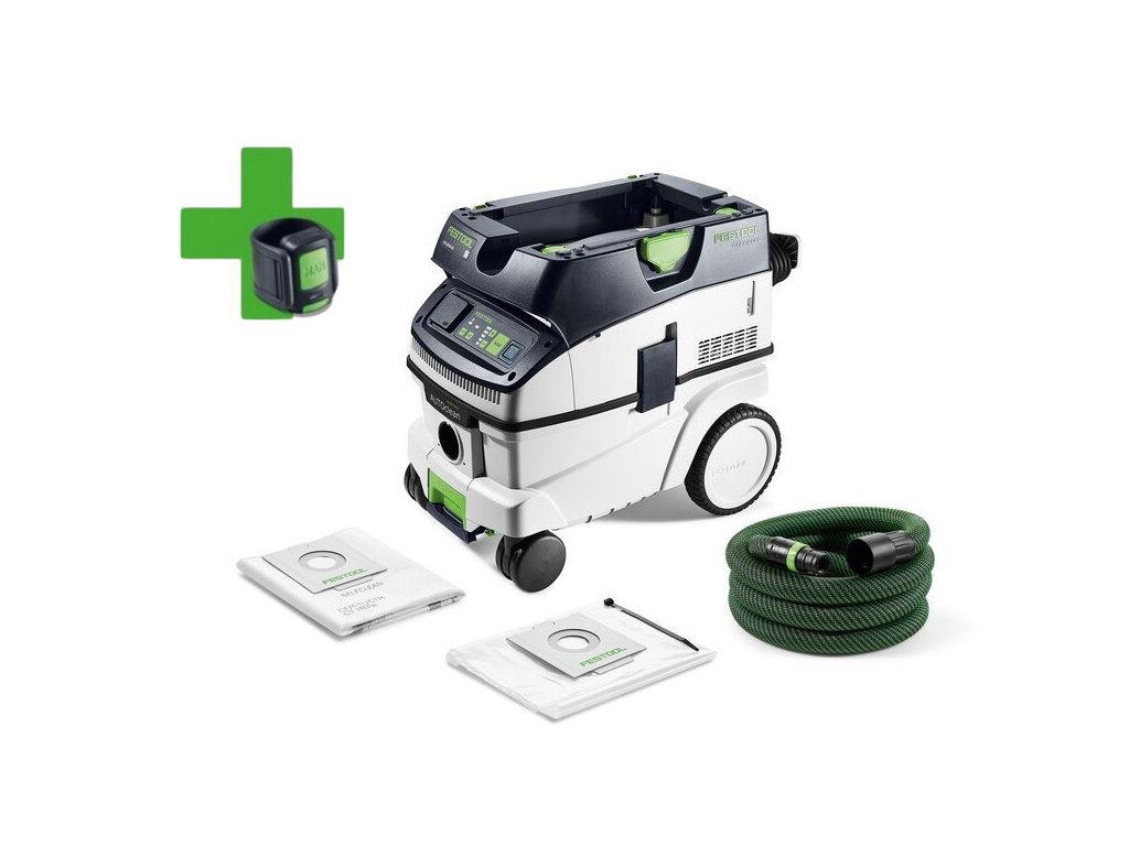 CLEANTEC CTL 26 EI AC sa vyznačuje, v porovnaní s predchodcom, efektívnejším čistením hlavného filtra AUTOCLEAN. To zabezpečuje konštantne vysoký sací výkon, dlhšie pracovné intervaly a dlhšiu životnosť filtra pri menších nárokoch na údržbu. Dotykové ovládanie umožňuje intuitívnu obsluhu tvojho vysávača. Zabudované rozhranie Bluetooth® umožňuje vysávač automaticky zapínať pomocou akumulátorového náradia Festool alebo pomocou voliteľného diaľkového ovládania. Ak je vysávač pripojený aj na aplikáciu Festool, možno tu napr. nastaviť intervaly čistenia. Hladkú, antistatickú saciu hadicu možno prakticky uložiť do zabudovaného držiaka hadice.