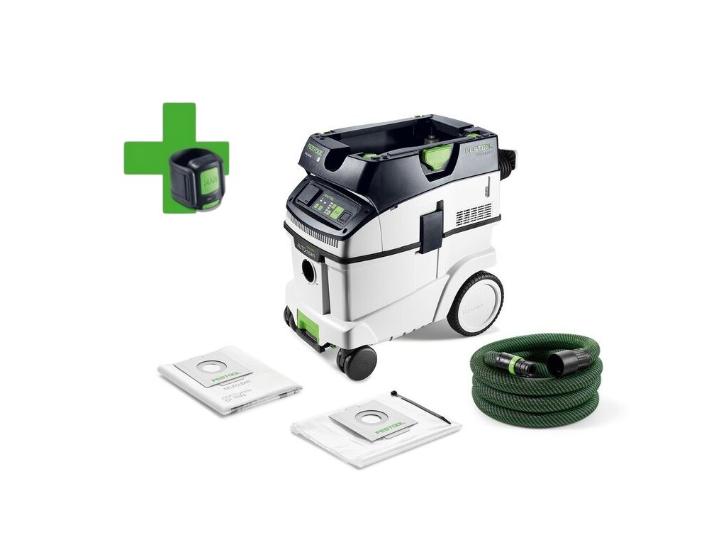 CLEANTEC CTL 36 EI AC sa vyznačuje, v porovnaní s predchodcom, efektívnejším čistením hlavného filtra AUTOCLEAN. To zabezpečuje konštantne vysoký sací výkon, dlhšie pracovné intervaly a dlhšiu životnosť filtra pri menších nárokoch na údržbu. Dotykové ovládanie umožňuje intuitívnu obsluhu tvojho vysávača. Zabudované rozhranie Bluetooth® umožňuje vysávač automaticky zapínať pomocou akumulátorového náradia Festool alebo pomocou voliteľného diaľkového ovládania. Ak je vysávač pripojený aj na aplikáciu Festool, možno tu napr. nastaviť intervaly čistenia. Hladkú, antistatickú saciu hadicu možno prakticky uložiť do zabudovaného držiaka hadice.