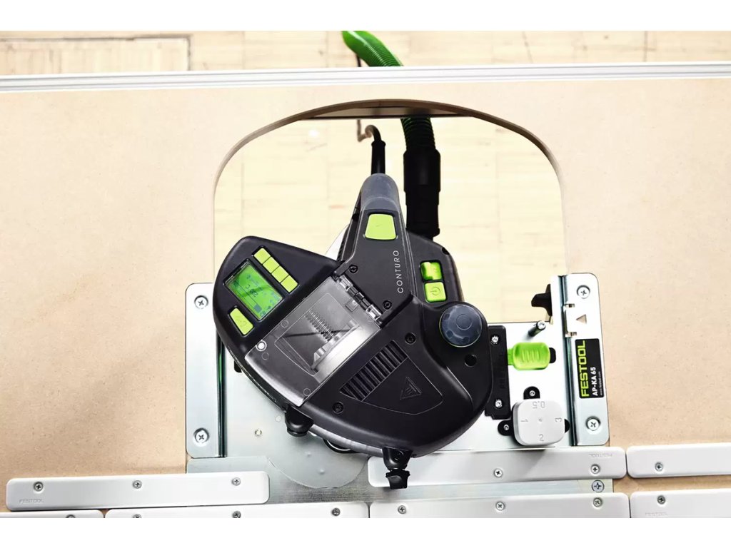 CONTURO sa vynikajúco hodí na stacionárnu prácu. Jednoducho sa len vloží do multifunkčného stola MFT/3 Conturo-AP. Umožňuje to nielen hranovanie rovných hrán a oblín, ale aj šikmých hrán s uhlom 90° – 45°, keďže CONTURO sa dá v stacionárnej jednotke vykyvovať v rozmedzí 90° – 45°.
