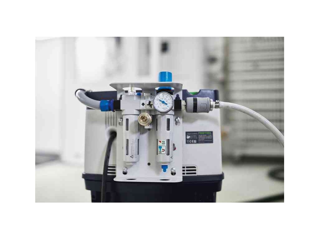 Na použitie hadicového pneumatického náradia napr. LEX 3 150 je potrebný určitý tlak a tiež istý podiel oleja. Napájacia jednotka VE-CT sa vynikajúco hodí na to, aby sa to spojilo v jednom mobilnom systéme. Napájacia jednotka sa postará o zmiešanie vzduchu s malými časťami oleja. Komponenty, ako sú lamely v pneumatickej brúske, sa tým mažú a pripojené pneumatické náradie tak bude mať dlhšiu životnosť.