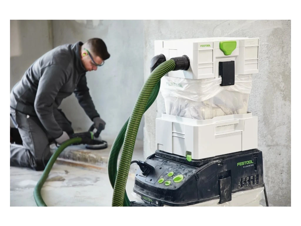 Veľký objem prachu a triesky už odteraz nepredstavujú žiaden problém. Ani pre hlavný filter, ani pre saciu silu. Pretože predradený odlučovač kompatibilný s mobilnými vysávačmi CT zachytí až 95 % prachu ešte skôr, ako sa dostane do mobilného vysávača. Odľahčuje to hlavný filter a garantuje konštantne vysokú saciu silu počas celého pracovného procesu. V kombinácii s mobilnými vysávačmi triedy prachu M a odpadovým vreckom zlikvidujete aj prach triedy ohrozenia M bezpečne a zdravo.