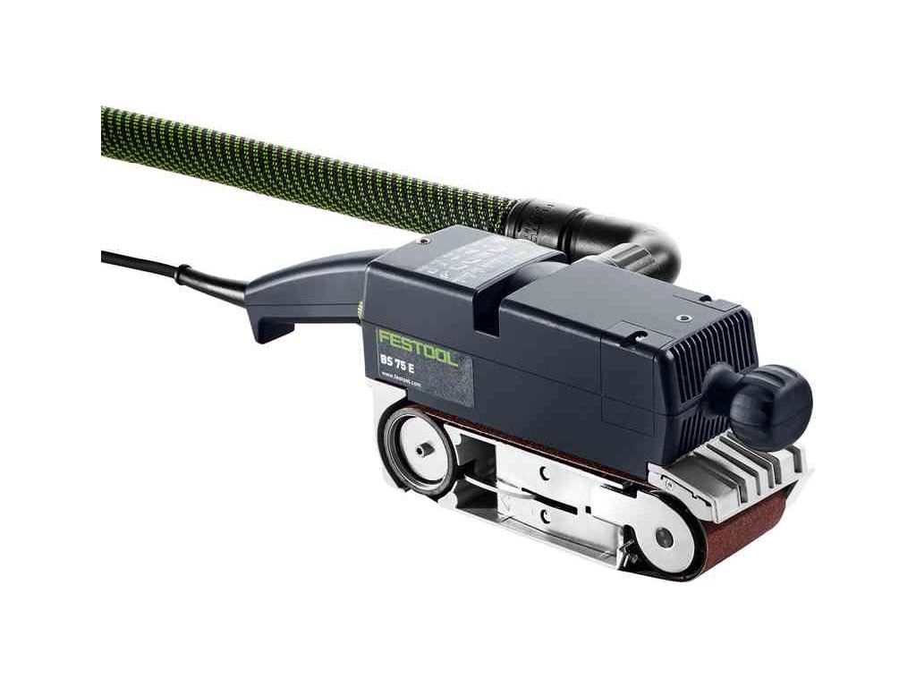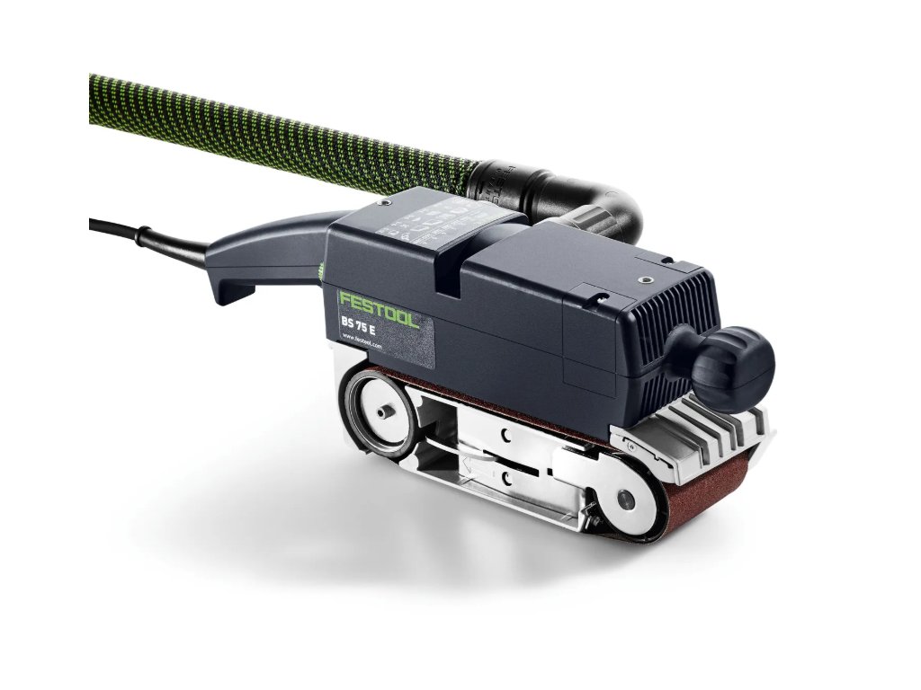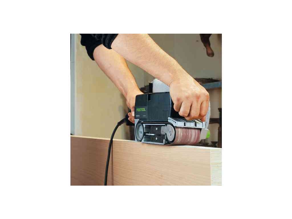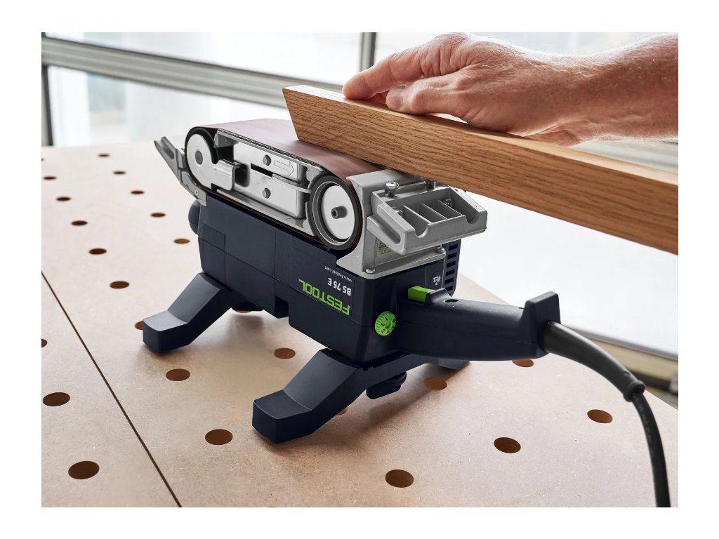 Praktická pásová brúska. Či už pri hrubom alebo jemnom výbruse, pri lineárnom brúsení sú pásové brúsky od firmy Festool spoľahlivým partnerom. Pritom prináša ich princíp fungovania skutočnú výhodu. Pretože sa vždy pracuje len v jednom smere – paralelne voči textúre – nevznikajú žiadne kruhové stopy po brúsení. To zabráni náročnému a zaťažujúcemu dodatočnému opracovávaniu. Pri šírke 75 mm je pásová brúska BS 75 mimoriadne praktická.