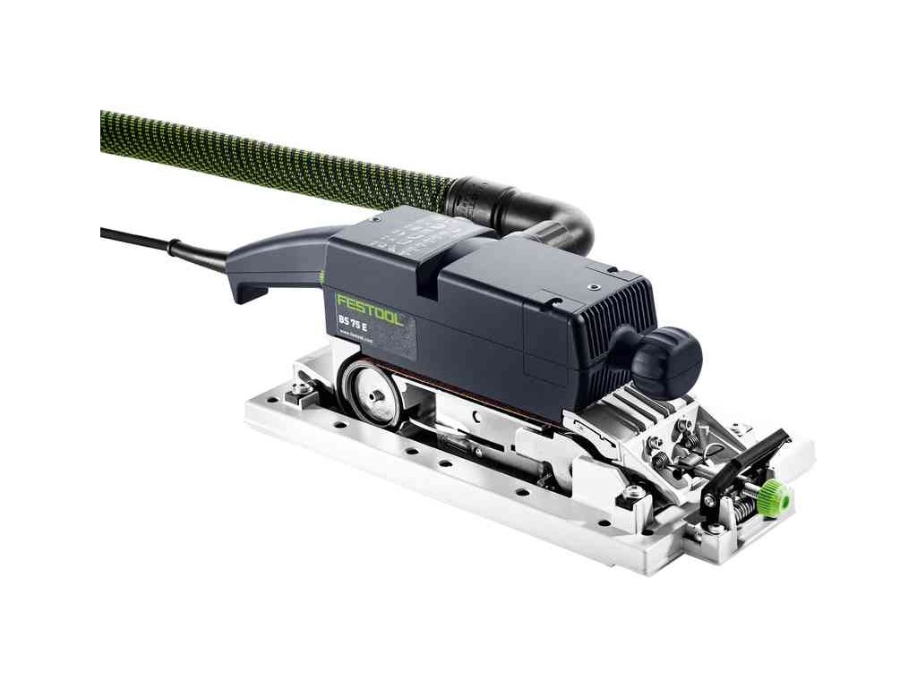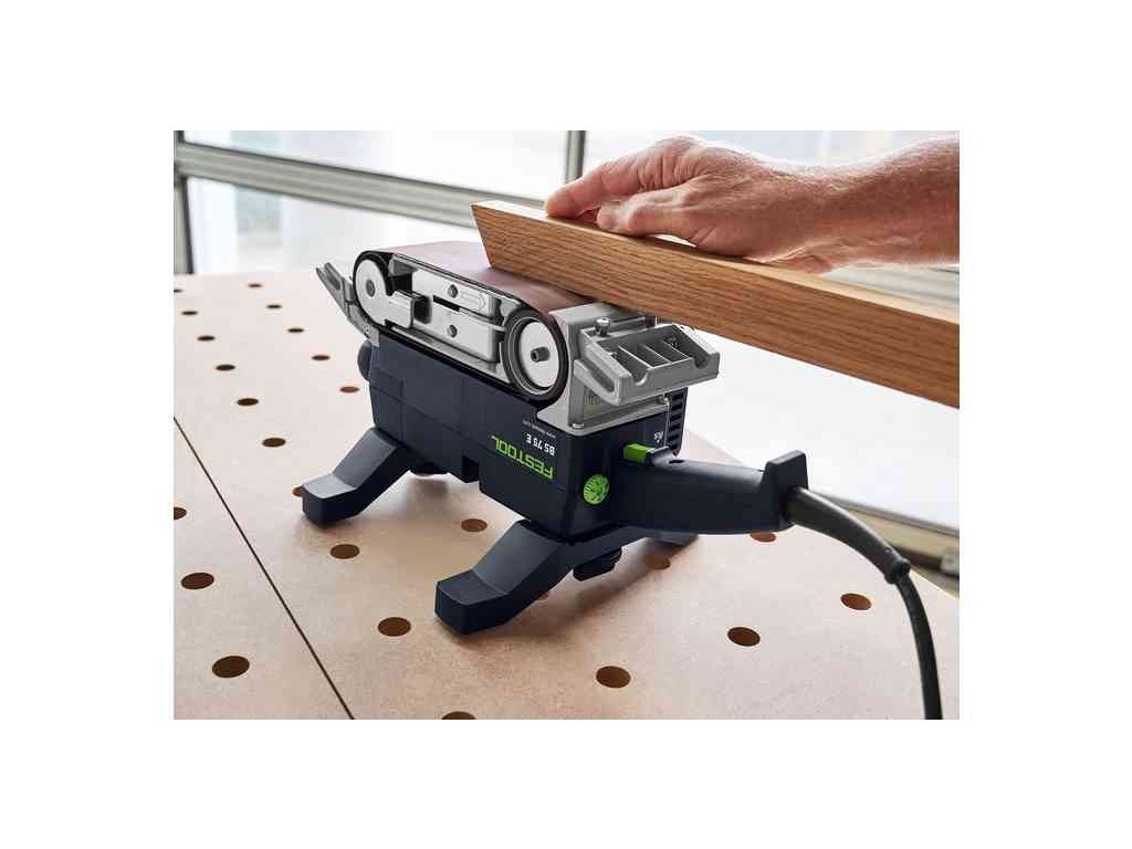 Praktická pásová brúska. Či už pri hrubom alebo jemnom výbruse, pri lineárnom brúsení sú pásové brúsky od firmy Festool spoľahlivým partnerom. Pritom prináša ich princíp fungovania skutočnú výhodu. Pretože sa vždy pracuje len v jednom smere – paralelne voči textúre – nevznikajú žiadne kruhové stopy po brúsení. To zabráni náročnému a zaťažujúcemu dodatočnému opracovávaniu. Pri šírke 75 mm je pásová brúska BS 75 mimoriadne praktická.