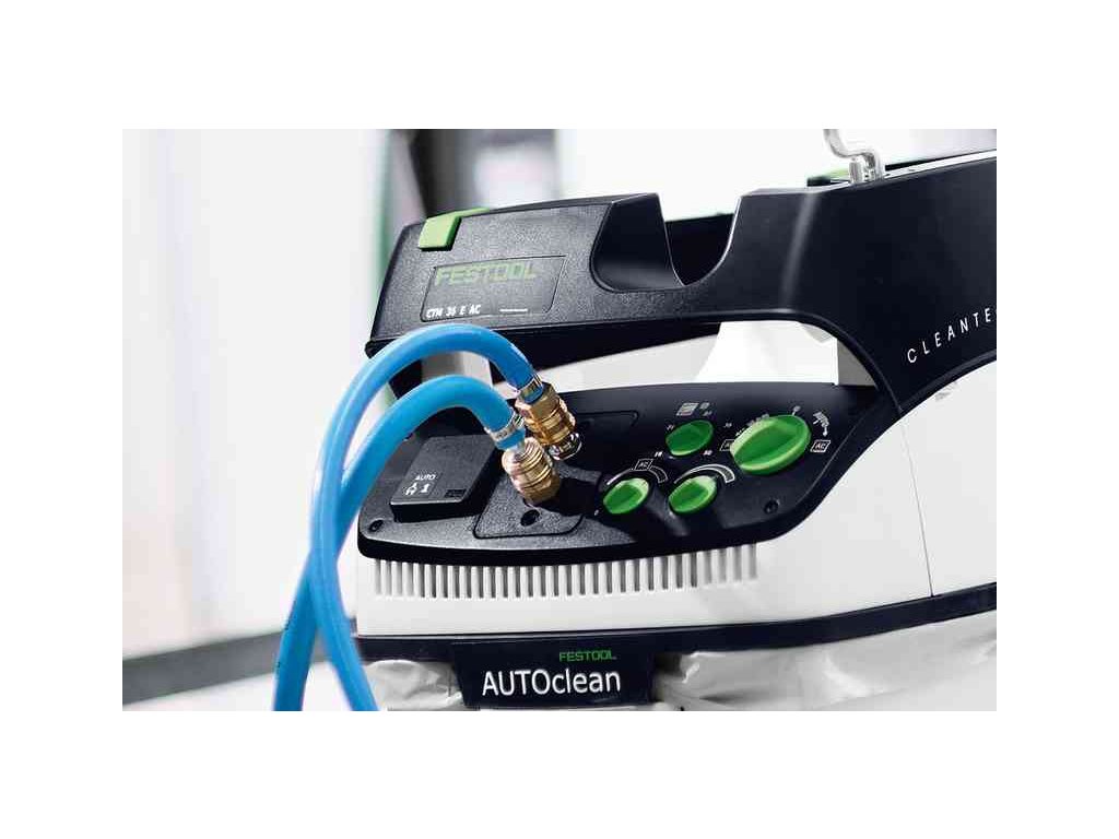 Pripojiteľný adaptér pre CT 26/36/48 so zapínacou a vypínacou automatikou pre pneumatické náradie na mobilnom vysávači. Pri správnej manipulácii sa vysávač spustí automaticky hneď po spustení pneumatickej brúsky: 1. Pripojenie stlačeného vzduchu spoločne s vysávačom. 2. Spojenie vysávača s brúskou.