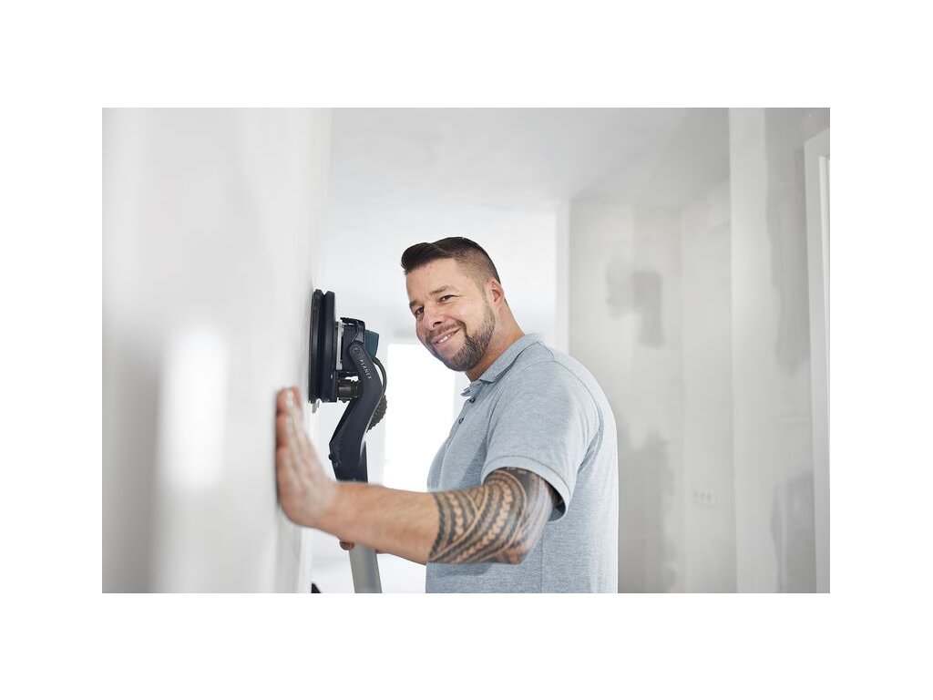 PLANEX M je medzi našimi brúskami univerzálnym pomocníkom. Vybaľte z prepravnej tašky, zapnite a do práce. Vďaka excentrickému brúsivému pohybu dosiahnete pritom na stenách a strope kvalitné povrchy. O brúsenie stien a stropov bez námahy sa postará nastaviteľné odsávanie – na odľahčenie ramien a chrbta. Pracovná dĺžka 1,4 m je pritom ideálna pre všetky štandardné výšky miestnosti. S praktickou rukoväťou v tvare T je dokonca možný väčší dosah.