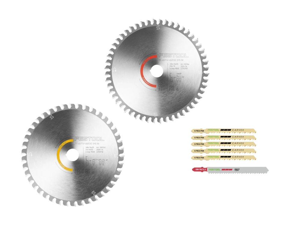 Vo výhodnom balíku pre všestranné opracovávanie dreva: Súprava Woodworking je dokonalou zostavou pre bezproblémovú prácu v stolárstve, podlahárstve a pri drevených stavbách. Táto súprava obsahuje dva rôzne pílové kotúče do kotúčovej píly a šesť pílových listov do priamočiarej píly pre každú prácu s drevom, laminátom a doskami so spojivom z melamínovej živice.