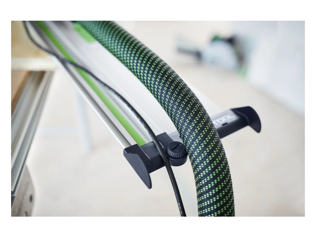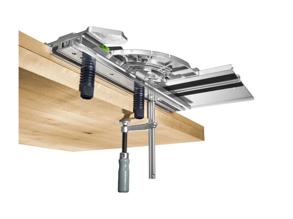 Všetko, čo môže vodiacu lištu ešte vylepšiť, v jednom kontajneri Systainer³: skrutkovacie svorky, kombinovaný uhlový doraz, nábehová hrana, ochrana proti spájacie prvky a triesková zábrana.
