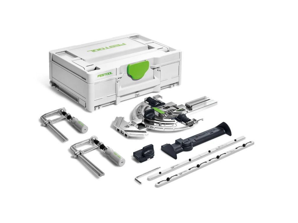 Uhlový doraz FS-WA, Predlžovací prípravok FSV/2, Nábehová hrana FS/2-AW, Skrutkovacia svorka FSZ 120, Ochrana proti spätnému rázu FS-RSP, kombinovaný inbusový kľúč veľ. 5/SW 3, Systainer³ SYS3 M 137