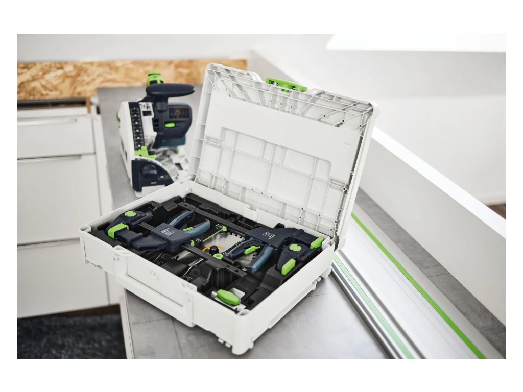 Táto súprava je perfektným doplnkom k vašej ponornej píle: Vďaka ukazovateľu polohy pri ponornom reze dokážete spoľahlivo trafiť presný vstupný a výstupný bod pílového kotúča pri akejkoľvek hĺbke rezu. Jednoducho ho vložte zhora do drážky vodiacej lišty a zaistite. Potom nastavte stupnicu ukazovateľa označenia na nastavenie hĺbky ponornej píly, zarovnajte ju s nárysom a výrezy realizujte presne tam, kde ich potrebujete. S príslušnými jednoručnými svorkami môžete vodiacu lištu upevniť na obrobok len jedným pohybom, aby ste mohli pracovať bezpečnejšie a kontrolovane. V kontajneri Systainer je miesto aj na pílové kotúče a spojky FS, aby ste mali systémové príslušenstvo vždy poruke.