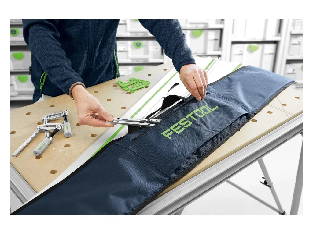 S ochranným vakom na vodiace lišty FS-BAG sú vodiace lišty riadne chránené, prepravované a uložené. Ochranný vak má veľkú hlavnú priehradku, do ktorej sa zmestí jedna alebo dve vodiace lišty až do dĺžky 1 400 mm. Okrem toho je k dispozícii ďalšie vrecko, do ktorého sa zmestia spojky a skrutkové zvierky alebo uhlový doraz FS-WA/90°.