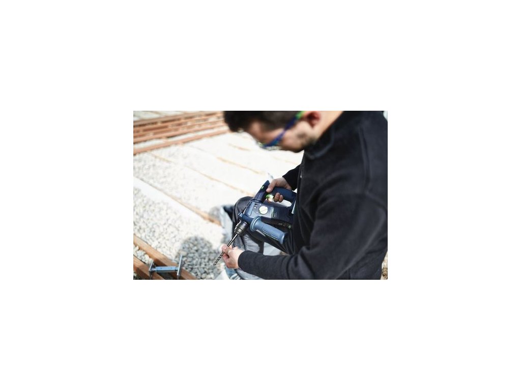 Vrtáky do kladív Festool presvedčia výnimočnou životnosťou a vysokou hospodárnosťou. Zosilnená hlava vrtáka je vyrobené z kvalitného spekaného karbidu. Práve pri vŕtaní armovaného betónu sa vyhotovenie so 4 ostriami postará o maximálnu bezpečnosť, pretože vrták sa pri narazení do oceľovej výstuže nezasekne. Vďaka 90° ostrému strediacemu hrotu sa môže vrták veľmi presne priložiť. Cez široké štrbiny na prach sa prach z vŕtania optimálne odvádza, čo umožňuje vysokú rýchlosť vŕtania.Používateľské prednosti
