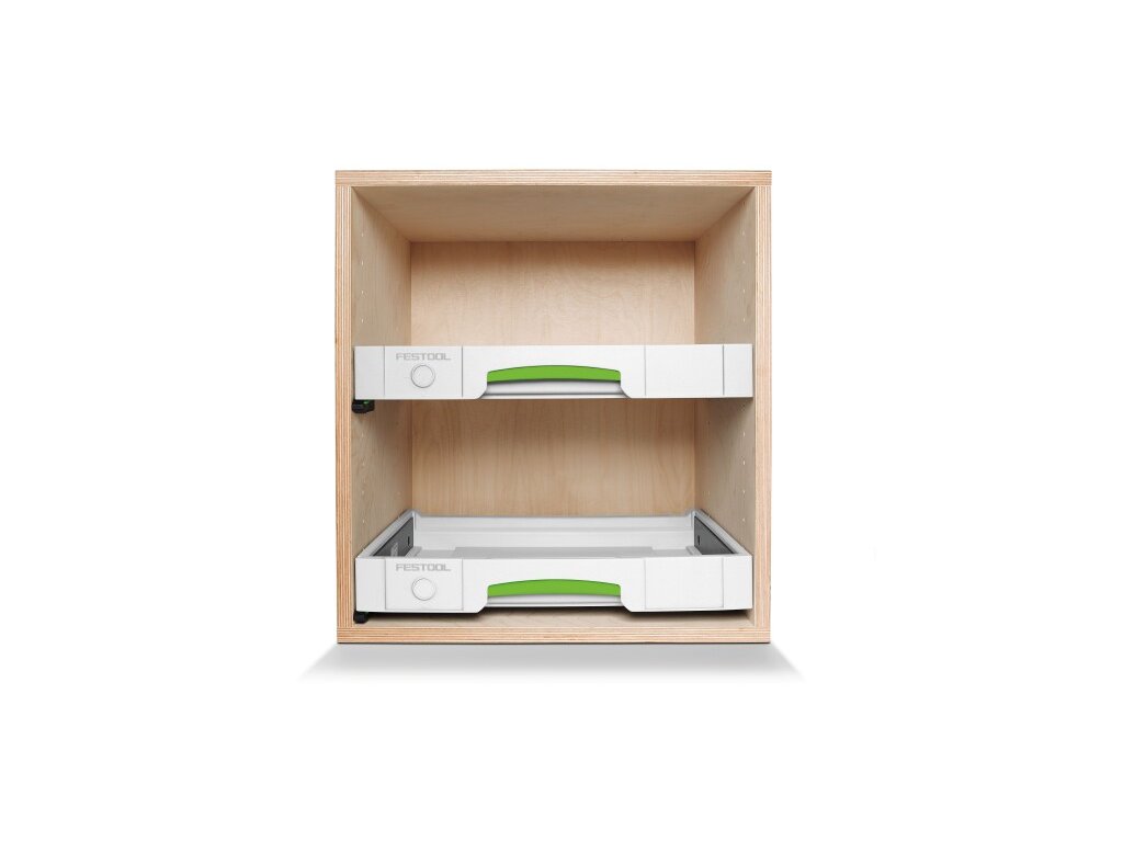 Poriadok podľa vlastného usporiadania. Individuálny systém usporiadania pre váš Systainer. Tak si jednoducho a rýchlo vytvoríte vlastný systém s výsuvnými policami s otvormi v 32 mm rastri. Vďaka úplnému vysunutiu môžete kontajnery Systainer otvoriť úplne bez toho, aby ste ich museli vybrať z regála. O bezpečnosť pred nepovolanými osobami sa postará zámok.