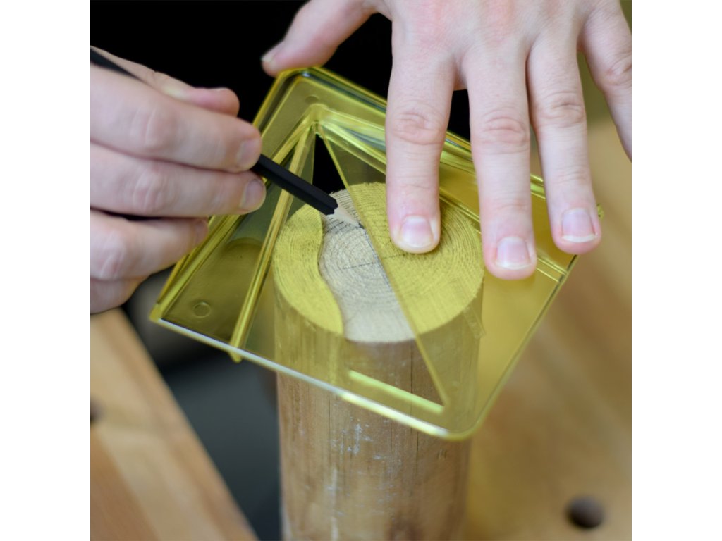 Šablóna pre hľadanie stredov, pomocou ktorej nájdete stred štvor-, šesť-, osemhranného hranolu alebo guľatiny behom niekoľkých sekúnd na čelnej ploche. Uľahčuje prácu pri sústružení dreva. Maximálny priemer obrobku 200 mm (šesťhranný 146 mm).