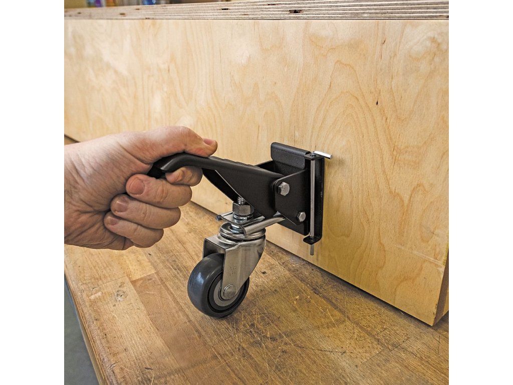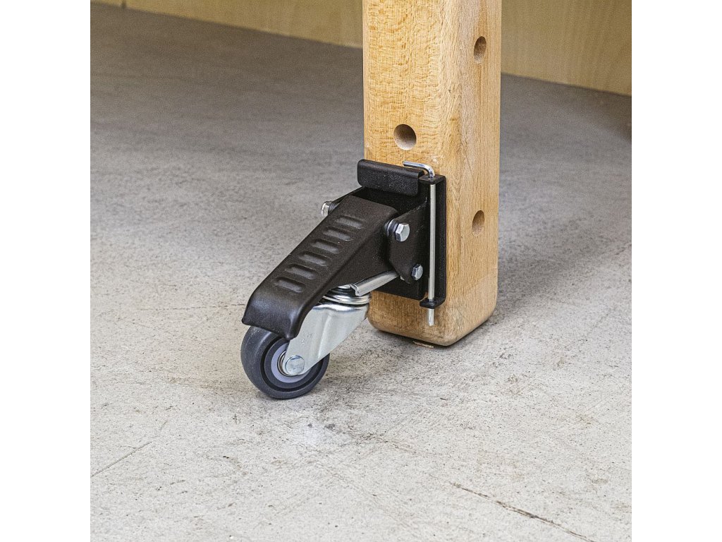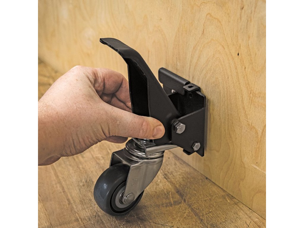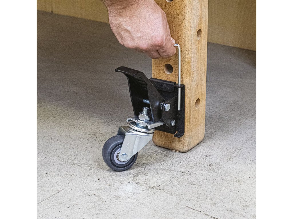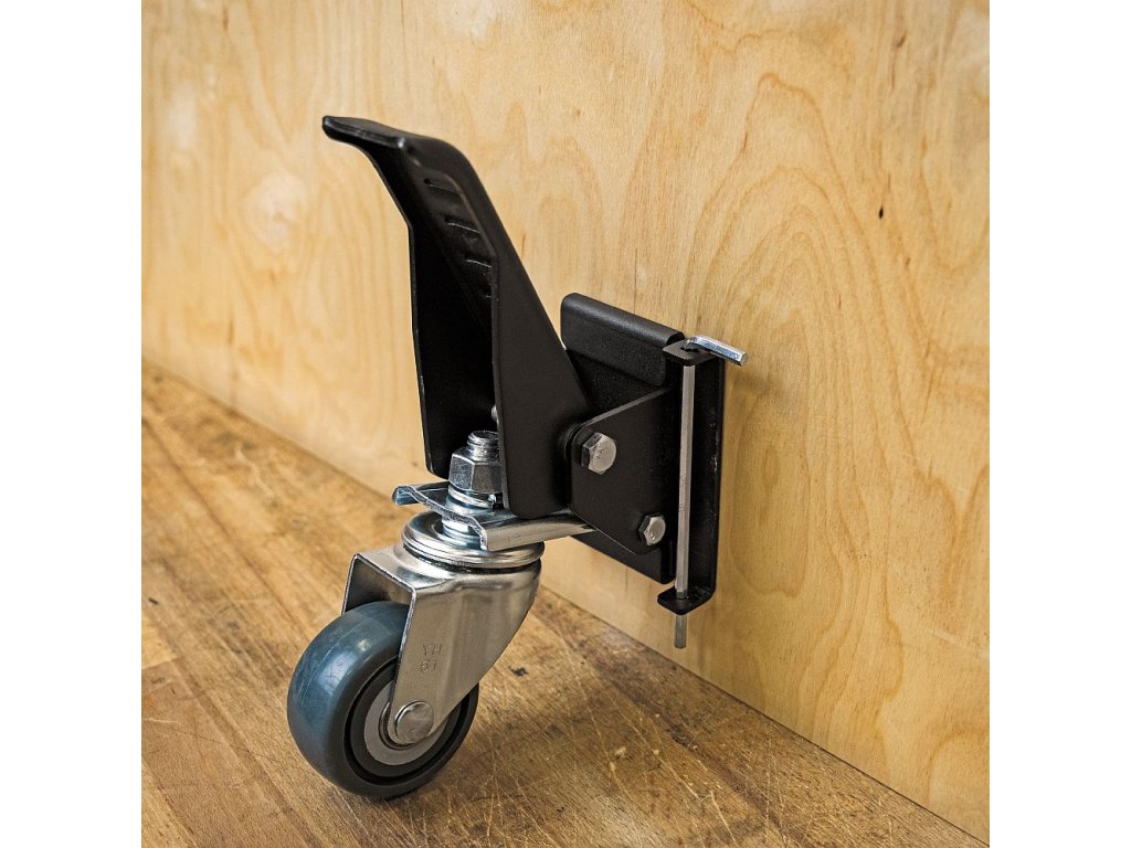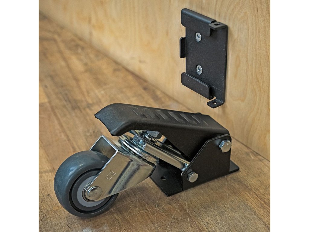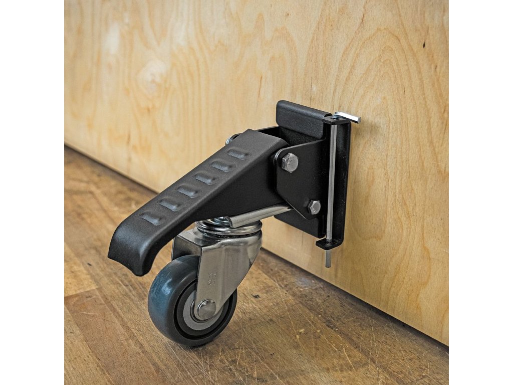 Sada štyroch Rýchloupínacích dosiek pre Pojazdové kolieska CK4. Vďaka doskám môžete kolieska jednoducho odňať a používať ich na viacerých strojoch. Montáž je jednoduchá, stačí zasunúť koliesko do dosky, vložiť inbus a na premiestňovanie po dielni zošliapnuť nožnú páku. Ak vám vadí prečnievajúca nožná páka, kolieska môžete vybrať a vytvoriť si tak viac miesta okolo stroja.