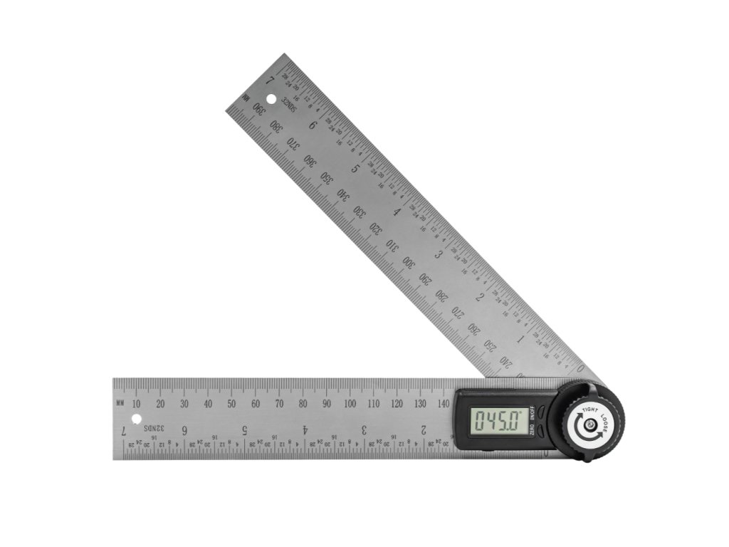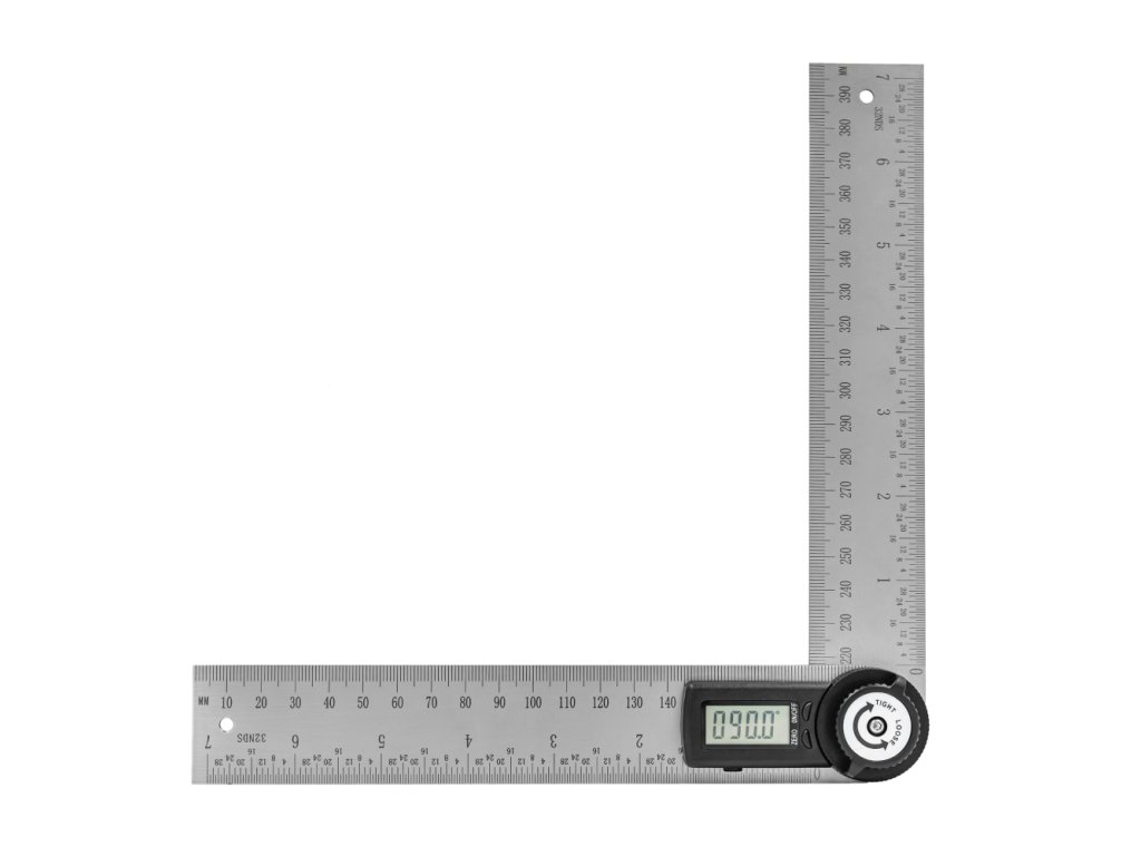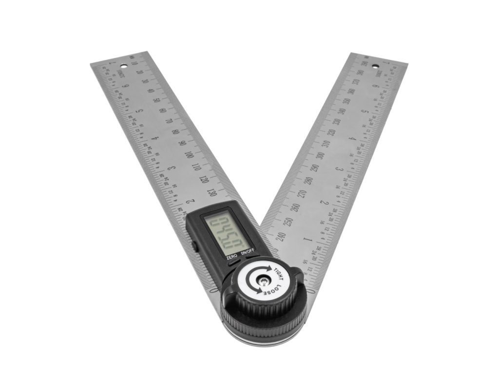 Ramená z nehrdzavejúcej ocele garantujú dlhú životnosť. Ľahko zmeriate ako uhol, tak dĺžku, jedným meradlom. Zobrazuje uhol rýchlo a presne na jasne svietiacim digitálnom displeji. Funkcia zamknutia pre prenos uhlov. Ľahká obsluha dvomi ovládacími tlačidlami. V rozloženom stave je dĺžky 400 mm.