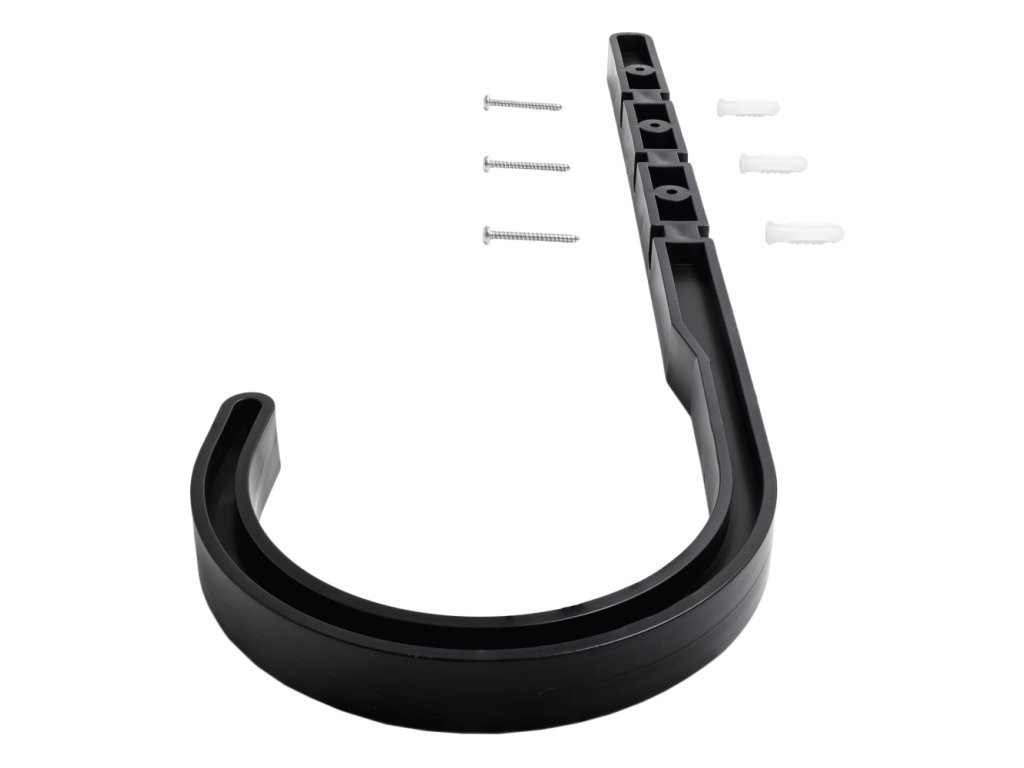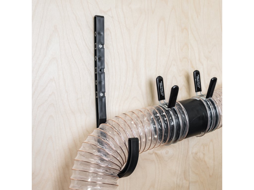 Jednoduché rešenie pre upnutie ľahkých hadíc, lán či drôtov na stenu. Vďaka 100mm priemeru môže slúžiť pre vedenie odsávacej hadice pozdĺž steny. V držiakoch je niekoľko otvorov, vďaka nim môžete namontovať držiaky do rôznych pozícií. Dodávané so štyrmi hmoždinkami a skrutkami.